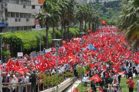 İzmir'de bazı siyasi partiler ve sivil toplum kuruluşları, 19 Mayıs Atatürk'ü Anma Gençlik ve Spor Bayramı için statlardaki törenlerin iptal edilmesini protesto amacıyla yürüyüş düzenledi. CHP, DSP, İP gibi siyasi partilerin yanısıra bazı sivil toplum kuruluşları ve sendika üyelerinden oluşan grup, resmî kutlamalara alternatif olarak yürüyüş yaptı. İzmir Büyükşehir Belediyesi önünde toplanan grup, ''19 Mayıs yasaklanmasın'', ''Yaşasın Atatürk cumhuriyeti'' sloganları eşliğinde Türk bayraklarıyla 1. Kordon'dan Cumhuriyet Meydanı'na yürüdü. İzmir Büyükşehir Belediye Başkanı Aziz Kocaoğlu, CHP İl Başkanı Tacettin Bayar, CHP milletvekilleri ve bazı ilçe belediye başkanlarının da katıldığı yürüyüş, Atatürk anıtı önünde son buldu. Anıta, "İzmir Halkı" yazılı bir çelenk koyulmasının ardından saygı duruşunda bulunuldu ve İstiklâl Marşı okundu. Atatürk'ün Gençliğe Hitabesi ve Gençliğin Ata'ya Cevabı'nı seslendiren grup, bazı marşlar da söyledi. Basın açıklamasının ardından da olaysız şekilde dağıldılar. CİHAN