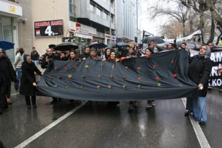İzmir'de kendilerine 'Halkların Demokratik Kongresi' üyesi adını veren bir grup, Irak sınırında hayatını kaybeden 35 kişinin ölümünü hzırladıkları tiyatro oyunu ile protesto etti.