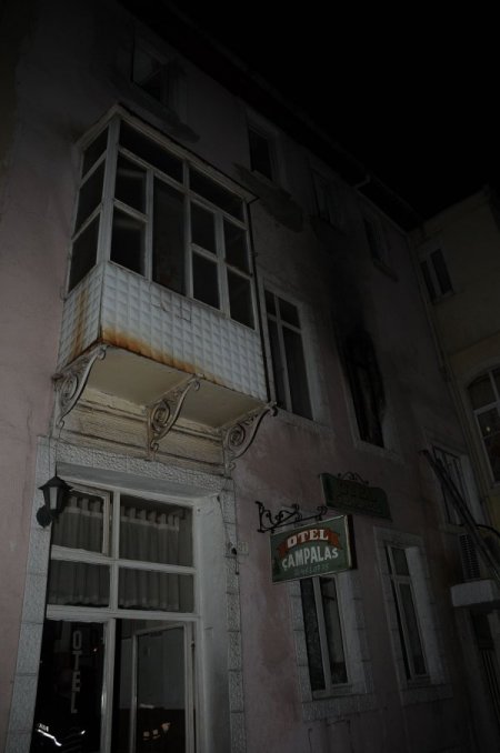 İzmir'in Konak ilçesinde, 3 katlı bir otelde çıkan yangında can pazarı yaşandı. Polis ve itfaiye ekipleri oteli boşaltmak için büyük gayret sarfetti. Dumandan etkilenen 3 kişi ambulansla hastaneye kaldırıldı. Yangın, saat 05.00 sıralarında Basmane semti 1296 sokak numara 31'de bulunan Akın Çan'a ait 'Çanpalas Oteli'nde yaşandı. Otelin ikinci katında henüz bilinmeyen bir sebeple yangın çıktı. Otel görevlisi ve sokaktan geçen vatandaşların otelden yükselen alevleri farketmesi üzerine durum hemen itfaiyeye bildirildi. Kısa sürede olay yerine ulaşan itfaiye ekipleri bir yandan alevlere müdahale ederken diğer yandan da otelde bulunanları tahliye etmeye çalıştı. Otelde kalan müşterilerin çoğu itfaiye tarafından tahliye edilirken, otelde kalan müşterilerden Hüseyin Yıldırım (34), Necati Atbaşı (58) ve Mehmet Çetin (48) yoğun dumandan etkilendi. Necati Atbaşı ve Mehmet Çetin, otelde kaldıkları odalardan itfaiye ekipleri tarafından sedyeyle dışarıya çıkarılarak ambulanslara alındı. Oteldeki yangın itfaiye ekiplerinin müdahalesi sonucu söndürüldü. Yangında büyük çapta maddi hasar meydana geldi. Yangının kesin çıkış sebebi yapılacak olan inceleme sonucu ortaya çıkacak. Polis, olayla ilgili olarak soruşturma başlattı.