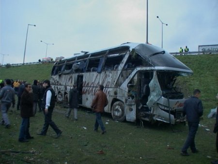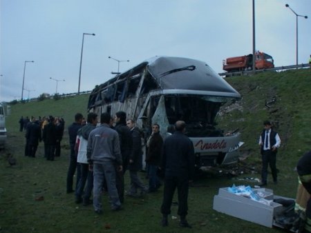 İzmir'in Bornova ilçesinde İzmir - Aydın otoyolu Işıkkent mevkiinde, yağış nedeniyle kayganlaşan yolda, önünde seyreden TIR'a arkadan çarpan yolcu otobüsü, kontrolden çıkarak şarampole yuvarlandı. Yol kenarındaki bariyerleri aşarak 10 metre aşağıya yuvarlanan otobüsteki 14 kişi yaralandı. Yaralılar olay yerine sevk edilen ambulanslarla İzmir'deki hastanelere kaldırılarak tedavi altına alındı.
