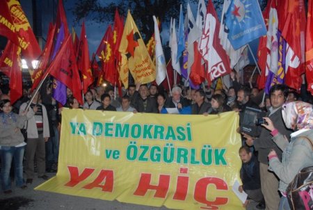 Yüksek Seçim Kurulu'nun (YSK) 12 bağımsız milletvekili adayının adaylıklarını veto etmesi, İzmir'de çeşitli siyasi partiler ve sivil toplum kuruluşları tarafından protesto edildi.