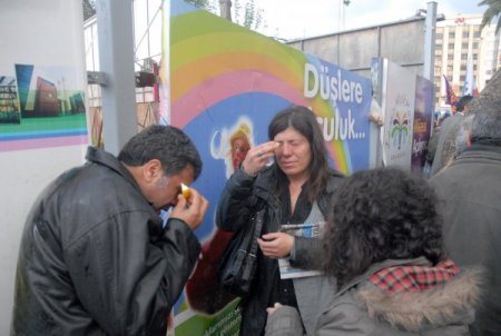 Basın açıklamasının ardından grup, BDP'nin Agora Parkı'nda kurduğu 'Demokratik Çözüm Çadırı'na doğru yürüyüşe geçti. Grubu, çadır çevresinde toplanmış kişiler, terör örgütü ve elebaşısı lehine slogan atarak karşıladı.
