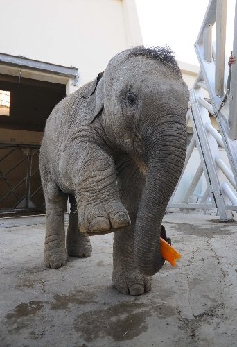 Günde 17 litre sütle beslenen Türkiye’nin ilk bebek fili "İzmir", 10 ay içinde 350 kg. ağırlığa ulaştı. Filin katı gıdalar arasındaki favorileri ise kuru incir ve salatalık.
