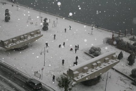 Alsancak Limanı Kordonu'ndaki kartopu keyfi..