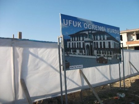 İznik’te Yenişehir Kapı’daki lunapark alanı yanında yaptırılan Özel Ufuk Öğrenci Yurdu inşaatında çalışmalar sürüyor