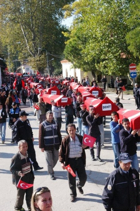 Bursa’nın İznik ilçesinde 25 sivil toplum örgütünün üyeleri, şehitleri anma töreni düzenledi. Bitlis ve Hakkari Çukurca’da meydana gelen saldırılarda şehit düşen asker ve polisler için ilçe merkezinde kılanan namaza katılan binlerce kişi gözyaşı döktü.