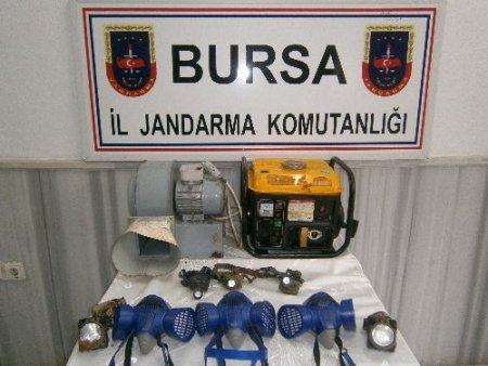 Bursa’da, kaçak kazı yaparken yakalanan 10 kişi gözaltına alındı. Osmangazi ilçesi Gökçeören köyü Kayacıbaşı mevkiinde kaçak kazı yapıldığı ihbarını alan İl Jandarma Komutanlığı ekipleri olay yerine gitti. Ekipler, ormanlık alanda yeni kazıldığı anlaşılan 60 cm genişliğinde ve 60 metre derinliğinde tünel buldu.