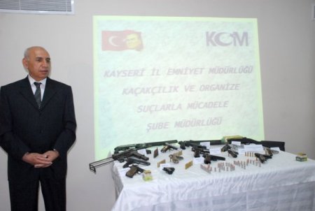 Kayseri’de bazı kişilerin silah ticareti yaptığını öğrenen emniyet kaçakçılık ve organize suçlarla mücadele şube müdürlüğü ekipleri, bu kişileri 6 ay önce yakın takibe alarak temasa geçti. Daha sonra bu silahlardan bazılarını satın alan polis, gerçekleştirdiği operasyonda bir adet uzun namlulu, iki adet pompalı, 16 adet çeşitli çap ve markalarda tabanca, 23 şarjör, bin 238 mermi ele geçirdi. Kayseri Emniyet Müdürü Cuma Ali Aydın; bu operasyonu son olarak şehit edilen iki polise armağan ettiklerini belirterek, “Silahlar terör örgütünün değil. Kişilerin sorgusu devam ediyor. Silahlar arasında bir de Glock marka suikast tabancası var. Bu kayıp silahlardan değil. Ancak silahların ele geçirilmeden önce bir eylemde, olayda kullanılıp kullanılmadığı yapılacak incelemeden sonra belli olacak. Operasyon sürüyor..” diye konuştu.