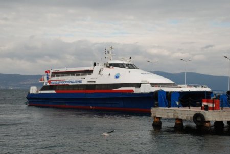 Kocaeli’nden kaçırılan ‘Kartepe’ adlı deniz otobüsü, getirildiği Kocaeli’nin Karamürsel Vapur İskelesi’nde sefere çıkartılmadı. Basın mensuplarının geminin içerisinden görüntü almasına da izin verilmedi.
