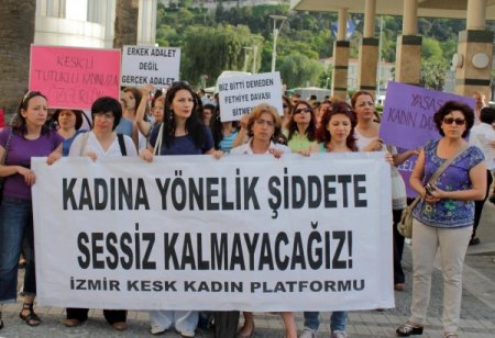 KESK İzmir Kadın Platformu üyeleri, akşam saatlerinde, ‘Şiddete sessiz kalmayacağız' sloganıyla yürüyüş yaptı. Sloganlar eşliğinde Konak YKM önünden başlayan yürüyüş, İzmir Vergi Dairesi önüne kadar sürdü. Ellerinde \'erkek adalet değil gerçek adalet', \'kadınlar el ele mücadeleye' ve \'kadına yönelik şiddete sessiz kalmayacağız' yazılı dövizler taşıyan grup adına açıklama yapan Meral Çelik, "8 Mart tarihinde yürürlüğe giren kadının ve aile bireylerinin korunmasına yönelik kanunu kadına yönelik şiddete son vermedi. Yaşanan 12 kadın ölümüyle bu belgelenmiştir. Hayatını kaybeden kadınlardan 4'ü koruma talep etmesine karşın erkekler tarafından öldürülmüştür. Bu olaylar kadına yönelik şiddetin yasal düzenlemelerle önlenemeyeceğini göstermiştir.” dedi.