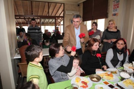 Toçoğlu, daha sonra kadınlara tek tek karanfil dağıttı ve onlara hayırlı ve güzel bir ömür geçirmeleri temennisinde bulundu.
