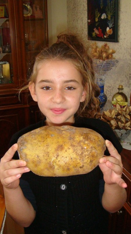 Topladığı patateslerden birini Antalya’da yaşayan torunu için ayırdığını belirten Er, hediye ettiği ürünün 1 kilo 300 gram ağırlığında olduğunu söyledi. Patatesin, torun Nizamettin Özmen’in kızının kafası kadar büyük olması dikkat çekti.