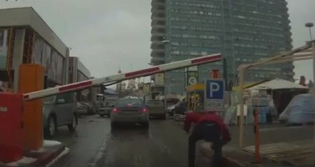 Rusya’nın başkenti Moskova’da bir otopark alanına yaya girmek isteyen vatandaşın kafasına otopark giriş bariyeri çarptı.
