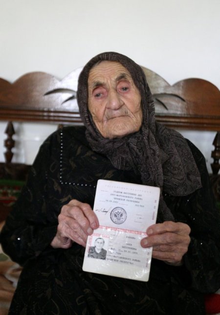Yaşı kadının pasaportunda doğum tarihi, 1890 olarak geçiyor. Fakat oğlu Salman, başkent Grozni’deki bir arşivden annesinin 1884 doğumlu olduğunu kanıtlayan bir belge bulduğunu iddia ediyor. Salman, “Bu belgeyi Çeçenistan İçişleri Bakanlığı da onayladı. Annemin yaşı 127. Benim yaşım ise 53. Anlaşılan annem beni 74 yaşında doğurmuş. Babam 1959’da 76 yaşında öldü” diyor.