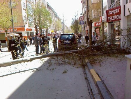 Turan Caddesi'nde, kaldırımın ortasında bulunan asırlık ağaç kendi kendine kökünden koparak yol boyunca devrildi. Olayın Cuma namazı saatine denk gelmesi can ve mal kaybını önledi. Olayın meydana geldiği esnada orada olan bazı vatandaşlar ise düşen ağacın altında kalmaktan son anda kurtuldu.
