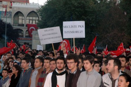 Ne zaman ki teröre 'Kürt sorunu' dendi ve teröristler siyasi alanda muhatap buldu, şehit sayısı 2003'te 31'e, 2004'te 75'e 2005'te 105'e çıktı. Bu süreçte şehit sayımız bini aştı." diye konuştu.