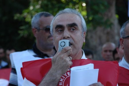 Türkiye Kamu Sendikaları Konfederasyonu (Kamu-Sen) İl Temsilcisi Mehmet Karabekir ve bir grup sendika üyesi, Diyarbakır'ın Silvan ilçesinde 13 askerin hayatını kaybettiği, 7 askerin de yaralandığı terör saldırısına tepki gösterdi.