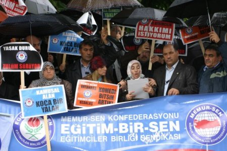 Sendikanın Kadınlar Komisyonu Başkanı Arzu Duran, İnönü Parkı'nda "Kamusal alan koca bir yalan", "Başörtüsü hakkımız söke söke alırız" sloganları arasında yaptığı açıklamada, "İktidarı, muhalefeti, sivil toplumu, kadını ve erkeğiyle hep birlikte elele omuz omuza vererek çağdışı başörtüsü yasağını kaldırmalıyız." dedi.