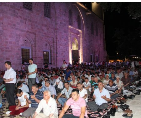 Her yaştan insanın büyük bir mutlulukla geldiği kentin en önemli camilerinden Ulucami, en yoğun gecelerinden birini daha yaşadı. Beraat Kandili nedeniyle tarihi camide Kur'an-ı Kerim ve mevlit okundu.