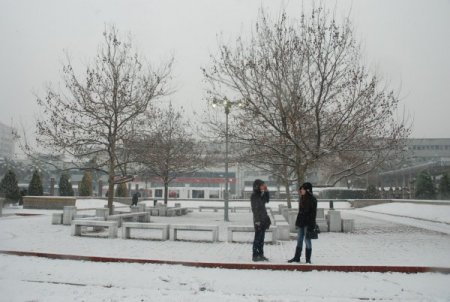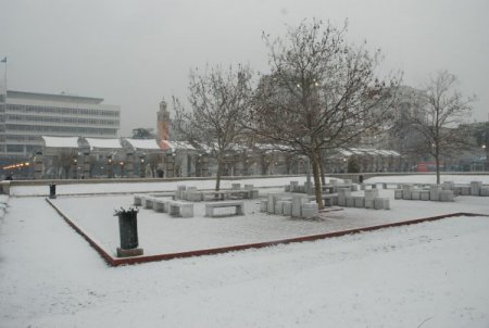 İzmir'de uzun aradan sonra yağan kar şehri beyaza bürüdü. Konak Meydanı ben beyaz bir görüntüye kavuştu.
