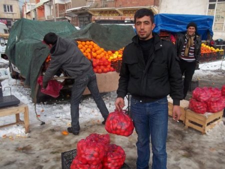 Adana’dan getirdikleri sebze ve meyveleri Adilcevaz’da satarak geçimlerini sağlayan seyyar satıcılar, yolların kapalı olması sebebiyle köylülerinilçe merkezine gelemediğini, bu nedenle satışlarının düştüğünü belirtiyor. Uzun yıllardır ilçede portakal ve mandalina satarak geçimlerini sağladıklarını belirten seyyar satıcı Barış Karahan, Adana’dan getirdikleri portakal ve mandalina gibi meyveleri ilçe meydanında satışa sunduklarını, ancak köy yolları kardan kapandığı için köylülerin ilçe merkezine gelemediğini, bu yüzden satışlarının düştüğünü söyledi.