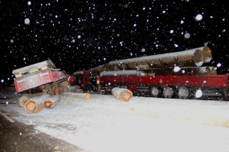 TIR sürücü Satılmış Aktaş önünde seyir eden yolcu otobüsünün tomruklara çarpmamak içi sağa kaçtığını gördüğünü belirterek, "Ben yukarıdan geliyordum ve bir baktım yolda tomruklar var. Tomruklara çarparak ve otobüse vurmamak için diğer yatan TIRa vurmayı hedefledim. Tomruklar benim TIR'ı makaslayınca yatan TIR'a mecburen vurdu. Eğer ben bu boruları otobüse devirseydim otobüs silindir gibi olurdu." dedi.