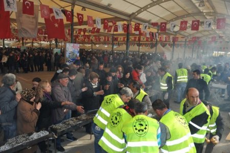 İzmir'de Karadeniz Dernekleri Konfederasyonu (KADEKON) tarafından organize edilen 4. Hamsi Şöleni'nde pişirilen 10 bin ton hamsi halka dağıtıldı.