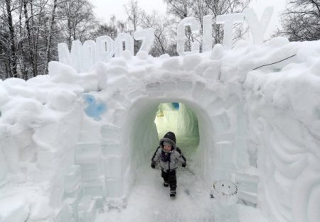 Rusya'nın başkenti Moskova'nın Sokolniki parkında onlarca mimar tarafından kurulan kardan şehir, görenleri hayrete düşürüyor. Karlı şehirde buz banyosu olan otel bile bulmak mümkün.