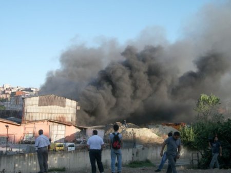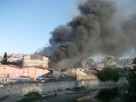 Depodan yükselen dumanlar kilometrelerce uzaktan görünüyor. Alev alev yanan depoya itfaiye ekipleri müdahale ediyor. CİHAN
