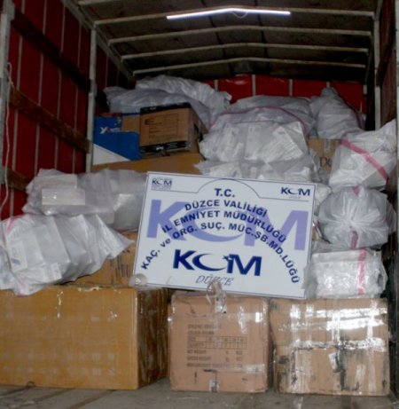 Güneydoğu illerinden temin edilerek, İstanbul'a götürüldüğü tespit edilen ve kargo kamyonlarına yağ tenekeleri ve çuvallarla yüklenen sigara kaçakçılığı, Düzce Emniyet Müdürlüğü Kaçakçılık ve Organize Suçlar Büro Amirliği ekiplerince yapılan operasyonla son buldu.
