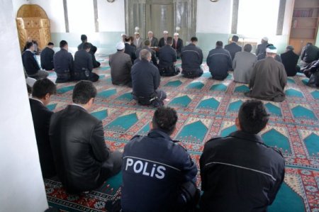 Bu arada cami girişinde emniyet mensupları vatandaşlara lokum ve kolonya ikram etti.