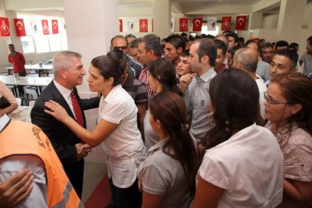 Başkan Durak, önce hizmet binasında, ardından da Örnekköy Şantiyesi'nde çalışanlarıyla bayramlaştı. Bayramlaşmalara başkan yardımcıları, CHP Karşıyaka İlçe Başkanı Adnan Alabay ve meclis üyeleri de katıldı. Şantiyedeki törende konuşan Durak, “Çalışanlarımızın maaşlarında, imkanlarımızın elverdiği ölçüde iyileştirmeye yapmaya çalıştık. Hiçbir vasfı olmayan bir işçinin aylık net eline geçen bin lira olacak şekilde düzenleme yapacağız. Çeşitli meslek gruplarından olup vasfı olanlar için de bin 250, bin 500 ve hattâ 2 bin liraya kadar çıkan net maaşlar olacak.” dedi. Karşıyaka Belediyesi'nin bayram ikramiyeleri ve maaşlarla ilgili hiçbir çalışanına borcu olmadığını söyleyen Durak, “Birlikte, omuz omuza çalışmanın güzelliğini yaşıyoruz. Kendi içimizde bütünlüğü sağlamaya çalışıyoruz. Çalışan arkadaşlarımın her zaman yanında oldum, onlara sahip çıktım. Sahip çıkmaya da devam edeceğim.” şeklinde konuştu. Belediyede hizmet alımlarıyla farklı birimlerde çalışan yaklaşık 800 işçinin sendikalı olmadığını hatırlatan Cevat Durak, "Tüm arkadaşlarımın örgütlü olmasını istiyorum. Bornova Belediyesi ile iki yıldır ortak bir şirket kurma girişimimiz var. Bayramdan sonra yasal işlemleri tamamlayacağız. Farklı yerlerde çalışanları buraya taşıyıp sendikalı olmalarını sağlayacağız." dedi. CİHAN