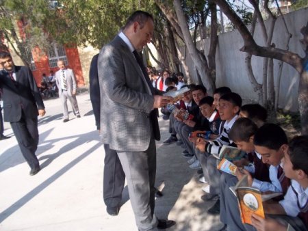 350 öğrencinin katıldığı etkinlikte Milli Eğitim Bakanlığı tavsiyeli kitapları alan öğrenciler okul bahçesinde yaklaşık bir saat kitap okudu.