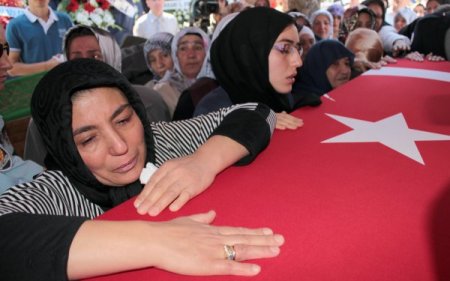 Hakkari’de terör saldırısı sonucu şehit olan polis memuru Mustafa Eyyup Darendelioğlu (29), memleketi Kayseri’de düzenlenen cenaze töreninin ardından göz yaşları arasında toprağa verildi. Darendelioğlu’nun annesi ve diğer yakınları, tabuta sarılarak uzun süre ağladılar.