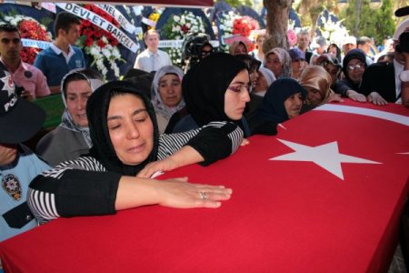 Kayserili olan şehit polis Mustafa Eyyup Darendelioğlu’nun naaşı, dün gece memleketine getirildi. Eğitim ve Araştırma Hastanesi morgundan bugün öğle namazı öncesi alınan şehit cenazesi, Hunat Camii avlusuna getirildi. Musalla taşındaki Türk bayrağına sarılı tabutun başına kadar gelen baba Ahmet Darendelioğlu, oğlunun fotoğrafına bakarak vedalaştı. Metanetini korumaya çalışan acılı baba, taziyeleri kabul etti. Daha sonra anne Meral Darendeli ve şehidin kız kardeşi Emine ile diğer bayan yakınları son veda için tabutun başına geldi. Anne Darendeli ve kız kardeş, tabuta sarılarak ve bayrağı okşayarak şehide veda ettiler. Terör şehidi Darendelinin anne ve kız kardeşi tabutun başından güçlükle uzaklaştırıldı. Kız kardeş, sinir krizi geçirirken sağlık görevlileri müdahale etti. Şehidin halası Nezahat de tabutu okşayarak ve ‘dedene selam söyle’ diyerek yeğeniyle vedalaştı.