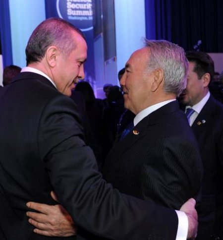 Kazakistan Cumhurbaşkanı Nursultan Nazarbayev, ABD'de Başbakan Tayyip Erdoğan ile sohbet etti. ABD'nin başkenti Washinghton'da yapılan Nükleer Güvenlik Zirvesi'nin açılış törenine katılan Kazakistan Cumhurbaşkanı Nursultan Nazarbayev, zirvede Türkiye'yi temsil eden Başbakan Recep Tayyip Erdoğan ile sohbet etti. Nazarbayev, Çin Devlet Başkanı Hu Jintao, İtalya Başbakanı Silvio Berlusconi, Ukrayna Cumhurbaşkanı Viktor Yanukoviç ve Pakistan Başbakanı J.Gilani ile kısa görüşmeler yaptı.