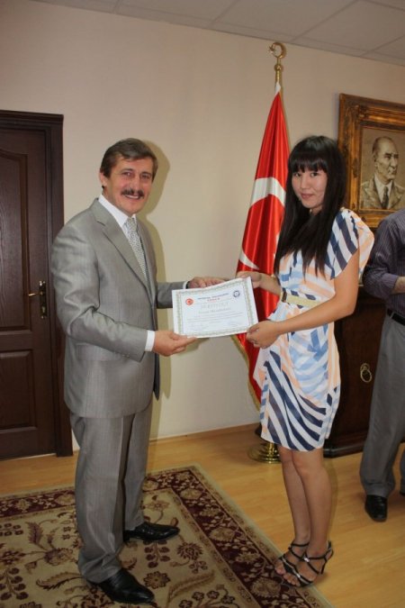 Programı tamamlayan Kazak öğrenciler, sertifikalarını almak için Erzincan Üniversitesi Rektörü Prof. Dr. İlyas Çapoğlu’nu ziyaret etti. Bir ay boyunca Erzincan'da geçirdikleri sürede çok eğlendiklerini ifade eden ve memnuniyetlerini dile getiren öğrenciler, Erzincan Üniversitesi Rektörü Prof. Dr. İlyas Çapoğlu’na teşekkür ederek hediye sundu.