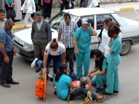 Çorum'da meydana gelen trafik kazasında yaralanan kadına ilk müdahale öğle yemeğine çıkan hastane personeli tarafından yapıldı.