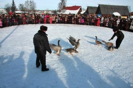 Rusya'nın geleneksel Slav ve Ortodoks kültürünün en yoğun yaşandığı bölgelerden birisi de Suzdal. Neredeyse her hafta farklı bir etkinliğin olduğu ahşap evlerden kurulu Suzdal, Maslenitsa şenliklerini tüm Şubat ayı boyunca yaşar. Çarlık dönemi Rusya'sında sıklıkla yapılan kaz dövüşleri de artık Maslenitsa'nın bir parçası haline geldi. İyi beslenen ve eğitilen kazlarla meydana çıkan Suzdallılar kazlarını dövüştürüyor. Bir çeşit horoz dövüşlerini andıran kaz dövüşlerini karın üzerinde halka oluşturan binlerce kişi heyecanla izliyor. (CİHAN)