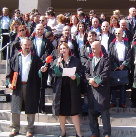 İzmir'de terör örgütü PKK'nın şehir yapılanması KCK'ya yönelik düzenlenen operasyonla ilgili gizlilik kararına İzmir Barosu tepki gösterdi. Geçen hafta düzenlenen ve gözaltına alınan 34 kişiden 30'unun tutuklandığı operasyonla ilgili olarak bir grup avukat, İzmir Adliyesi önünde basın açıklaması yaparak dosyadaki kısıtlamaları eleştirdi.