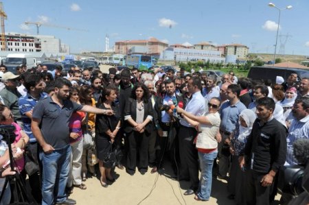 Van Bağımsız Milletvekili Aysel Tuğluk, BDP Ağrı Milletvekili Halil Aksoy ve BDP İstanbul Milletvekili Sebahat Tuncel'in de aralarında bulunduğu grup, duruşma çıkışı sanık avukatlarıyla birlikte basın açıklaması yaptı. Grup, 'Faşizme karşı omuz omuza', 'KCK halktır, halk burada', 'KCK tutukluları onurumuzdur', 'Savunma haktır engellenemez' şeklinde slogan attı.