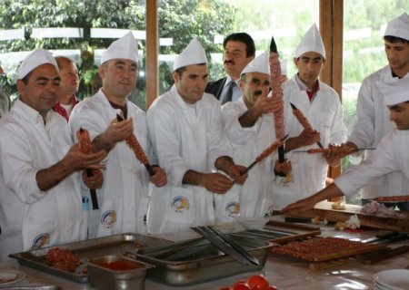 Adana’da “Tescilli Adana Kebabı” ustalık eğitim programı çerçevesinde Türkiye’nin dört bir yanından gelen 24 ustaya sertifika verildi. Ustalar, etin yoğurulmasından şişe takılmasına, pişirilmesinden mangalın hazırlanmasına kadarki süreçte birbiriyle yarıştı. Ticaret Odası Başkan Yardımcısı Mehmet Şahbaz, “yarım” ustaların hazırladığı kebabı yeyip, “Daha güzel yapacaklarından eminim” dedi.