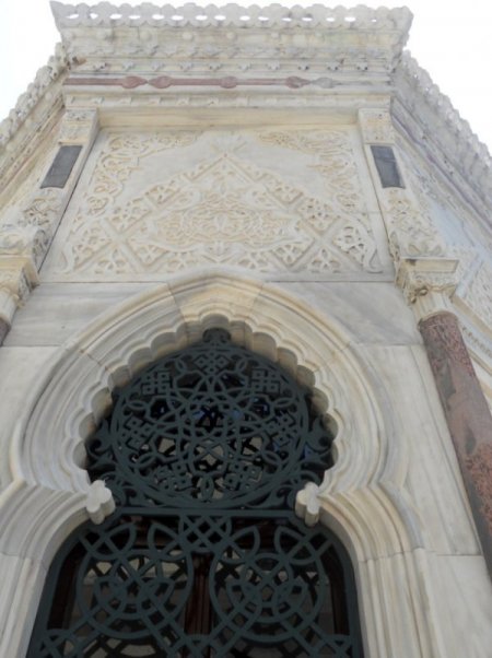 Türbe, sekizgen planlı olup, dış cephesindeki mermer süslemeleri Endülüs mimarisinden etkilenmiş. At nalı şeklindeki kemerli pencereleri son derece özenli bir işçiliği yansıtıyor. Kademeli taş kaide üzerinde çokgen planlı türbenin üzeri kubbe ile örtülü durumda. Türbenin kapı ve pencerelerinde Mağrip üslubu kemerleri gotik silmelerle beraberlik sağlıyor. Köşe sütunları yine Mağrip mimarisinde karşılaşılan moresk başlıkları ile dikkati çekiyor. Pencere şebekelerindeki bezemeler Endülüs Elhamra Sarayı’nın bezemelerini andırıyor. CİHAN