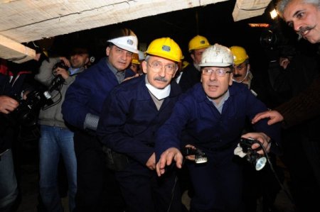 CHP Lideri Kemal Kılıçdaroglu yeni yıla Manisa'nın Soma İlçesinde soma maden ocaklarında madencilerle birlikte girdi.