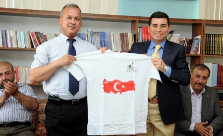 Tütüncü, konuşmasının ardından toplanan nakdi yardımı Dernek Başkanı Cengiz Nizam’a takdim etti. Nizam, yapılan bağıştan, istihdam ve hizmet binası desteklerinden dolayı Başkan Tütüncü’ye teşekkür etti. Cengiz Nizam, Tütüncü ve güreş komitesi üyelerine üzerinde Türk bayrağı olan birer tişört hediye etti.