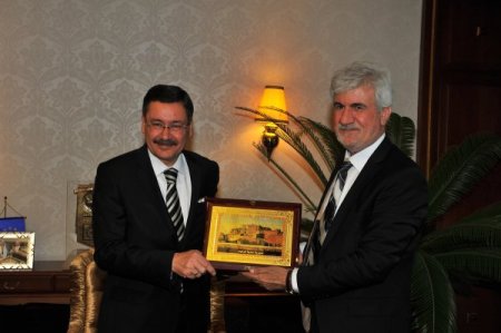 Sohbetin ardından Başkan Gökçek, konuk belediye başkanı Rafiq’e üzeri işlemeli tabak ve çini vazo hediye etti.