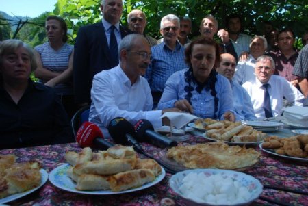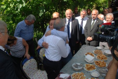 Geceyi Gürcistan’ın Acara Özer Cumhuriyeti’nin Başkenti Batum’da geçiren CHP lideri, bu sabah saat 08.30’da Sarp Sınır Kapısı’ndan Türkiye’ye giriş yaptı. Beraberindeki milletvekili ve partililerle birlikte Hopa’nın Kemalpaşa Beldesi’ne bağlı Dereiçi Köyü’nde Metin Lokumcu’nun evini ziyaret eden Kemal Kılıçdaroğlu, aileye başsağlığı diledi. Metin Lokumcu’nun annesi Saadet Lokumcu’nun elini öpen Kılıçdaroğlu, Lokumcu’nun eşi Gülay, oğlu Ulaş, kardeşleri Mete Lokumcu ve Ayşe Bekar ile bir süre sohbet etti. Lokumcu ailesine ait evin bahçesinde Kılıçdaroğlu’na Laz Böreği ve ayran ikram edildi.