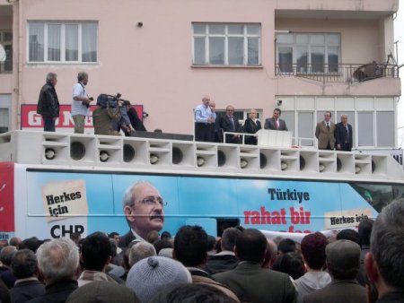 Ayrıca iktidara ağır eleştirilerde bulunan Kılıçdaroğlu, "Eğer onurları varsa o koltuğa oturmazlar." ifadelerini kullandı. CHP Lideri, kalabalık içerisinden, Başbakan Erdoğan'a yönelik dün Zonguldak'ta ettiği küfürleri devam ettirmesini isteyen bir guruba gülerek karşılık verdi.