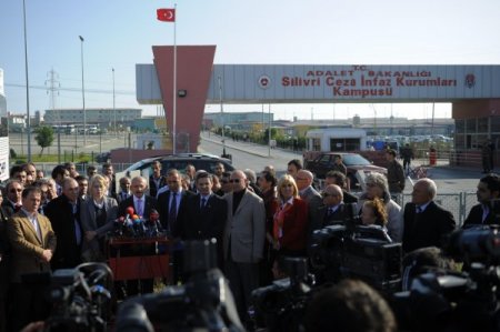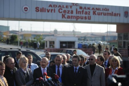 Cumhuriyet Halk Partisi (CHP) Genel Başkanı Kemal Kılıçdaroğlu, parti otobüsüyle geldiği Silivri Cezaevi'nde Mehmet Haberal ve Mustafa Balbay'ı ziyaret etti.