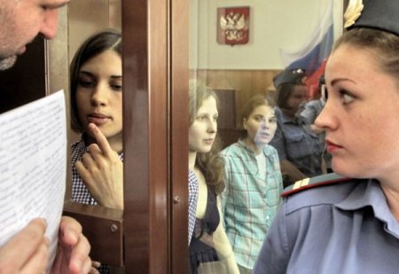 Geçtiğimiz Şubat ayında Moskova’nın merkezindeki Kurtarıcı İsa Kilisesi’ne girerek dönemin Başbakanı Vladimir Putin karşıtı şarkı söyleyen Rus punk müzik grubu Pussy Riot’ın üyeleri, mahkeme önüne çıkarıldı. Muhalif siyasi şarkılarıyla tanınan kızlar, holiganlık ve toplumda dini nefreti körüklemekle suçlanıyor.